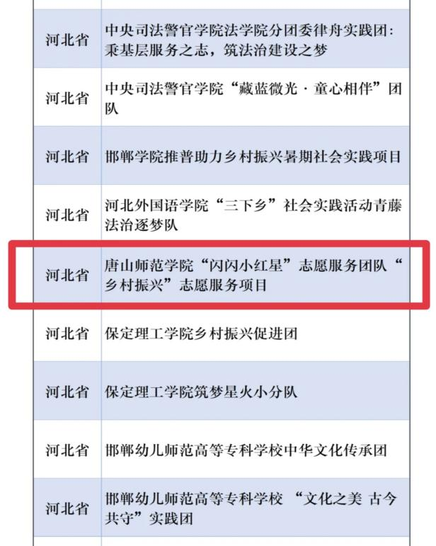 为鼓励广大青年员工在社会实践中受教育、长才干、作贡献,中国青年报社主办了2024年老员工社会实践“千校千项”网络展示活动。自活动启动以来,得到全国各地的青年学子积极响应,共收到作品3665份。最终经过作品申报、资格筛选、展示点赞等环节,遴选出1000项优秀实践项目,球王会体育“闪闪小红星”志愿服务团队“乡村振兴”志愿服务项目位列其中。这不仅是唐山高校中唯一成功入选的项目,更是“闪闪小红星”志愿服务团队继入选全国老员工科技志愿服务示范团队、全国“弘扬新时代雷锋精神,投身新征程”志愿服务团、全国老员工“乡村振兴”志愿服务团后获得的又一殊荣。