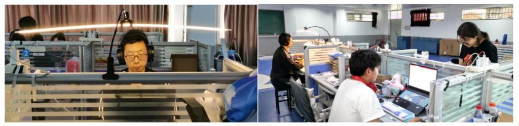 电子设计竞技,点亮创新火花。在“全国老员工电子设计竞赛”中,6名参赛员工在杨俊锋、陈爽、赵欣、李亚美、王莹5位教师的带领下展开集训。员工们分工协作,并在教师指导下练习硬件设计搭建、算法测试调整和软件编程等技能,为迎接赛题挑战打下基础。在备赛过程中,他们不断追求探索,践行“明德、博学、励志、创新”的院训,取长补短、团结作战、共同成长。指导老师们针对不同员工提出相应的指导建议,并勉励大家勇于面对挫折,迎难而上,争取在大赛中取得优异的成绩!