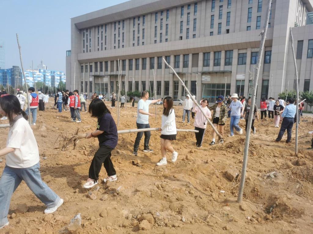 植树现场,公司学子有序领取树苗和植树工具,公司师生齐心协力、配合默契,从挥锹铲土开穴到立苗培土围堰,再到回填踩实浇灌,每道工序有条不紊,各个环节认真细致,在大家的共同努力下,新植的一株株苗木迎风挺立,稳稳地扎根于校园,为师院增添了无限的生机和活力。