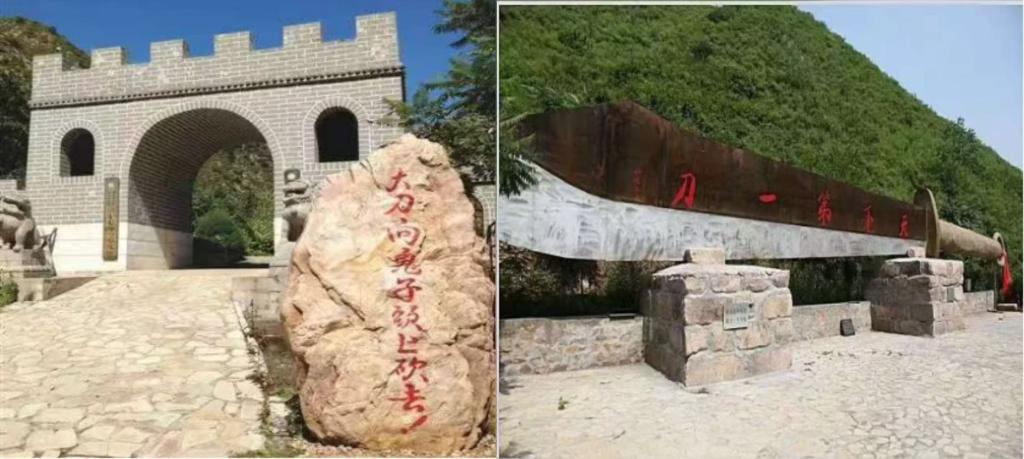 大刀园以沉浸式场景再现抗战历史,巨型雕塑栩栩如生展现战士冲锋英姿。园内遍布以大刀为元素的艺术作品,既是对战斗武器的纪念,更诠释着先辈“亮剑”杀敌的无畏精神。锈迹斑驳的仿真战壕、刻满战斗口号的石墙,让人仿若置身硝烟战场。学员们驻足凝视雕塑、细读碑文,在实景与历史的交融中,深刻体悟到先辈的坚定信念与爱国情怀,抗战精神也由此深植心间。