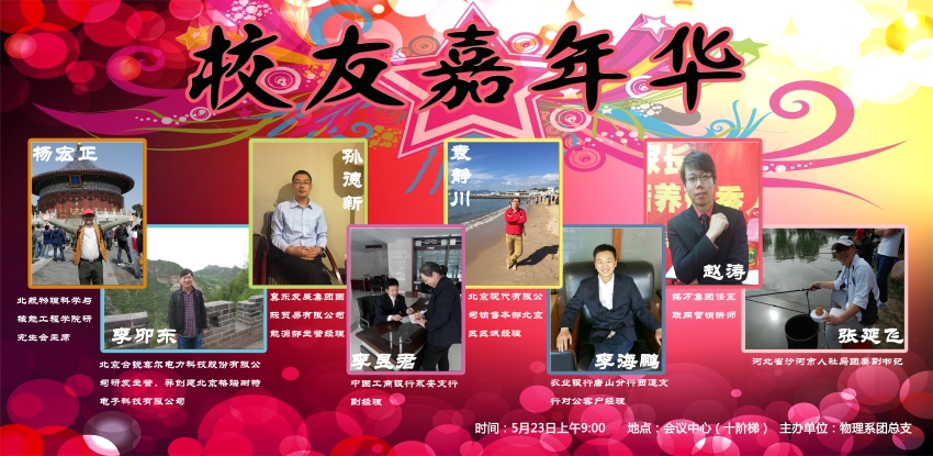 由物理系团总支主办的员工嘉年华——优秀毕业生交流会,将于2015年5月23日上午9:00,在球王会体育南院会议中心(十阶梯)举办,欢迎广大师生前来参观。在此预祝此次交流会圆满成功。