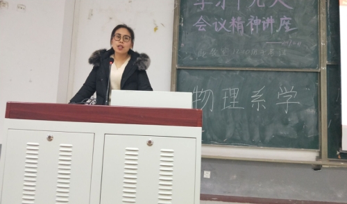 日下午在第四阶梯教室成功举办《学习党的十九大会议精神》宣讲会。本次宣讲会由校宣讲团化学系李敏贤老师主讲,我系党总支副书记李雪梅老师和学工办主任李先铭老师担任指导教师,我系员工党员、员工干部参加学习。