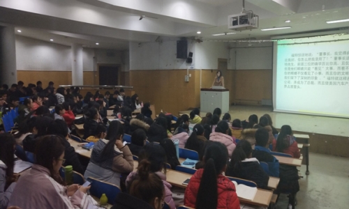 日晚七点,我系于第九阶梯教室举行校园礼仪文明讲座,特邀请常美娜老师给我系全体大一新生进行礼仪讲解。