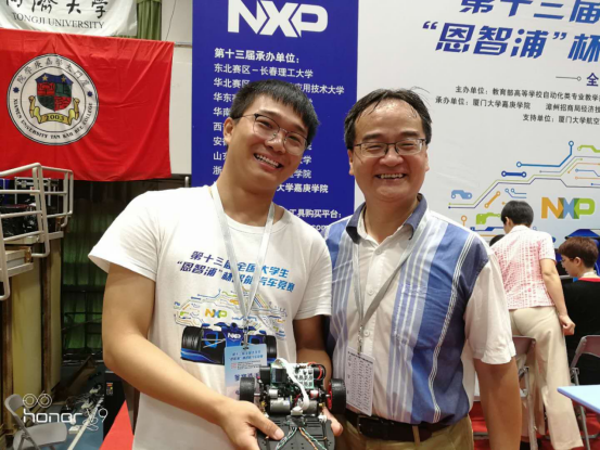 图为参赛员工李震与来自清华大学自动化系的竞赛组委会专家卓晴老师合影