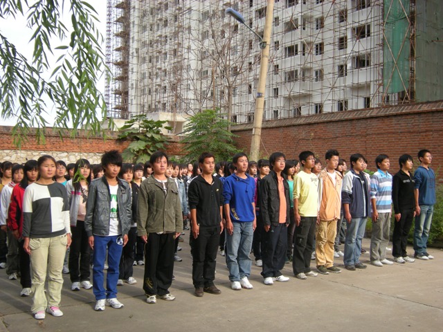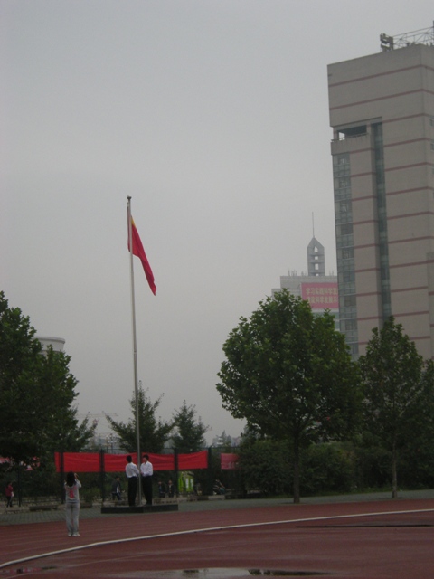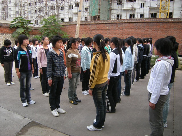 图1:9月7日早8时,在经过将近一个小时的首次晨训后,我们的教官、物理系